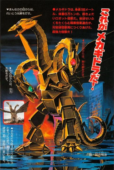 - A character named MechaGhidorah was designed at one point. This 100 meters tall and 60,000 tonnes heavy character had a similar background and abilities similar to that of Wyvern; a bio-mechanical kaiju designed by an outer space race to defeat monsters on Earth, and each head possessed different beam ability including a gravity beam, ice beam, and heat ray.